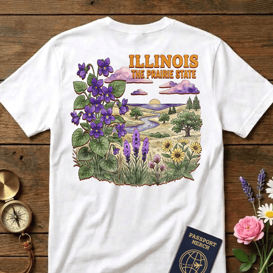 Illinois Flowers in Watercolored Oak Back Print T-Shirt