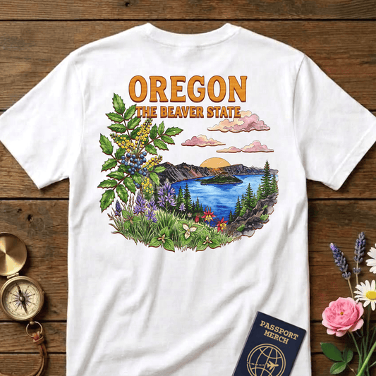 Oregon Flowers in Watercolored Oak Back Print T-Shirt