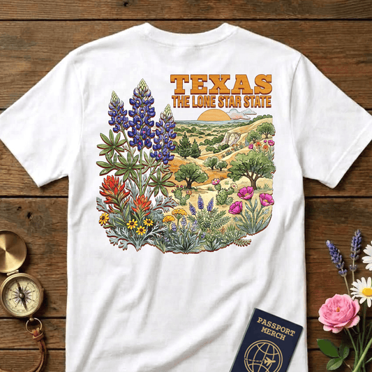 Texas Flowers in Watercolored Oak Back Print T-Shirt