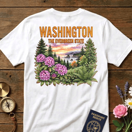 Washington Flowers in Watercolored Oak Back Print T-Shirt
