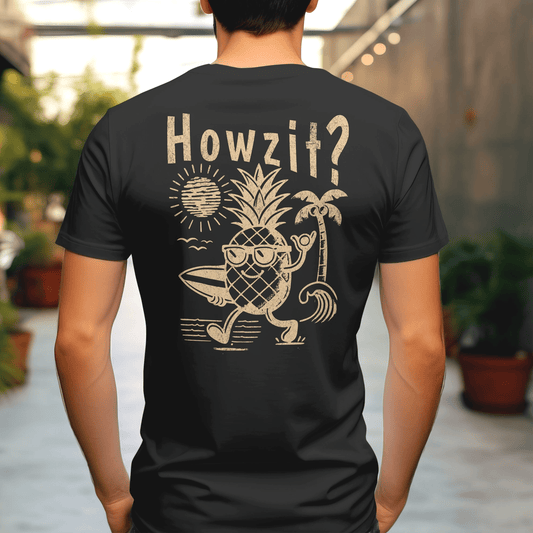 Howzit? Pineapple Shaka, Hawaii, Back Print T-Shirt